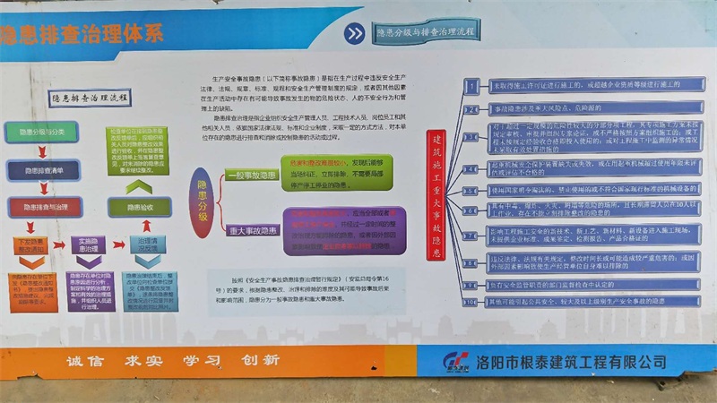 為認真貫徹落實(shí)黨中央、國務(wù)院決策部署,堅決遏制重特大事故頻發(fā)勢頭,按照《國務(wù)院安委會(huì )辦公室關(guān)于實(shí)施遏制重特大事故工作指南構建雙重預防機制的意見(jiàn)》(安委辦〔2016〕11號)、《河南省住建廳關(guān)于印發(fā)<河南省房屋建筑和市政工程施工安全風(fēng)險隱患雙重預防體系建設行動(dòng)方案>的通知》(豫建建〔2018〕72號)要求,洛陽(yáng)市根泰建筑工程有限公司積極響應,在全公司范圍內大力推進(jìn)并構建了安全風(fēng)險分級管控和隱患排查治理雙重預防機制,這是2018年下半年以來(lái)公司在遏制重特大事故發(fā)生所采取的安全生產(chǎn)管理重要舉措。
