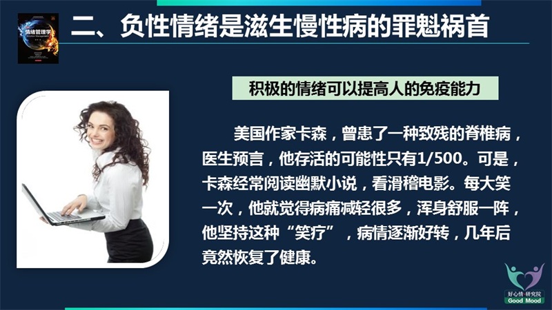 情緒是人們“生命的指揮棒”“健康的寒暑表”,任何人都離不開(kāi)它。它不僅是一種主觀(guān)感受、還是一種生理的反應、認知的表達,在一些特定的條件下會(huì )產(chǎn)生不同的表達方式:主動(dòng)的、消極的……一旦產(chǎn)生消極思想我們要主動(dòng)出擊,感受它、評估它、控制它,而如何反應并駕馭,就是王教授今天為我們帶來(lái)的精彩講解。