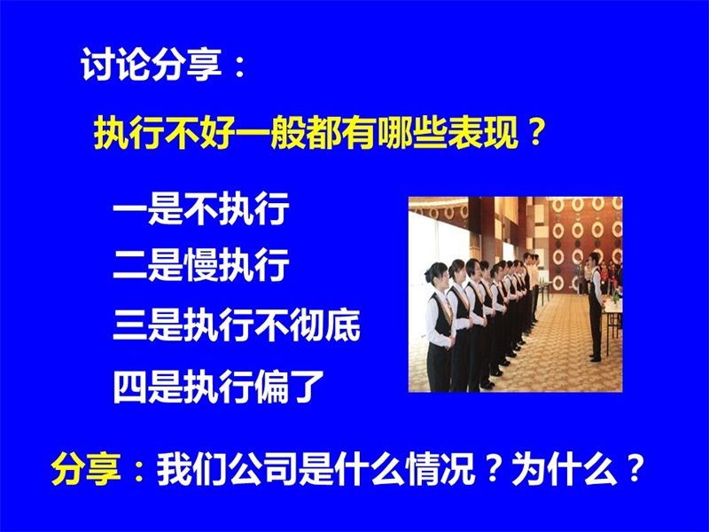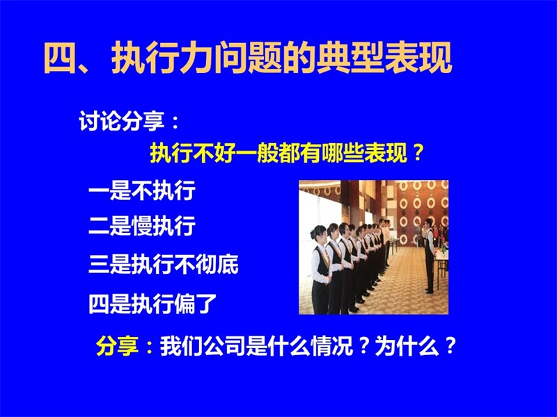 每個(gè)公司都有管理規章制度,都會(huì )制定戰略目標、中遠期規劃乃至近期計劃,然而結果卻讓人大跌眼鏡,究其原因,執行力出現了問(wèn)題。執行力已經(jīng)成為大多數企業(yè)的一個(gè)共性問(wèn)題,沒(méi)有執行力一切都是空談,沒(méi)有執行力一切都是零。