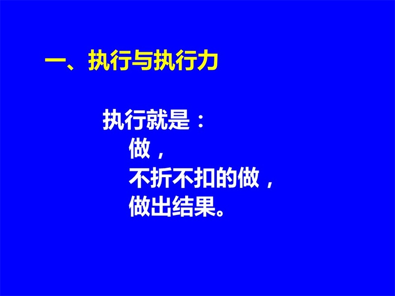 1.執行力就是:做事的行動(dòng)能力,把事做完, 做出結果的能力! 簡(jiǎn)言之,執行力是指企業(yè)內部員工貫徹決策者戰略思路、方針政策和方案計劃的操作能力和實(shí)踐能力。